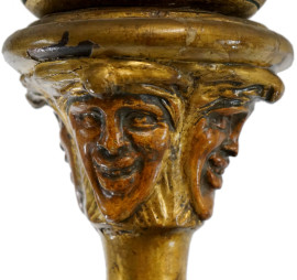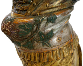 Moro veneziano, XIX secolo, scultura in legno ebanizzato, dorato e decorato in policromia, cm h 196, (difetti, parte superiore sostituita).