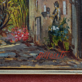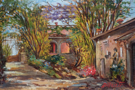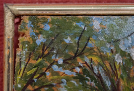 Pergolato, olio su tavoletta, cm 10,5x15, firmato, entro cornice.