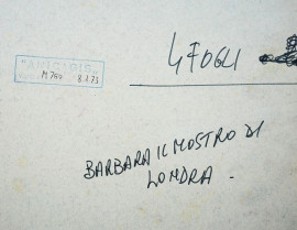 Barbara - Il mostro di Londra, tempera su cartoncino, cm 49x35, firmato Piovano|Studio Paradiso, recante iscrizioni, timbro "Anicagis" e data a tergo, (lievi difetti)