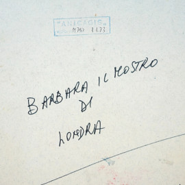 Barbara il mostro di Londra, tempera su cartoncino, cm 50x35, firmato Piovano|Studio Paradiso, recante iscrizioni, timbro "Anicagis" e data a tergo, (lievi difetti)