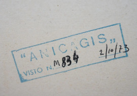 Giochi d'amore di un'aristocratica, tempera su cartoncino, cm 57x48, recante timbro "Anicagis" e data a tergo, entro cornice