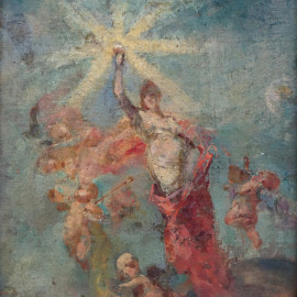 Pittore della fine del XIX secolo, Venere stella del Mattino, olio su cartone telato , cm 28,5x20, entro cornice.
