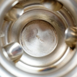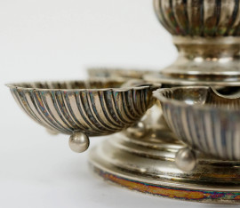 Portacandela in argento con cinque singoli posaceneri estraibili a forma di conchiglia, argentiere Mussulam, Milano, seconda metà XX secolo, cm 9,5x16, peso gr. 320
