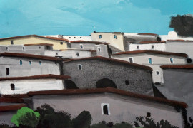 Paesaggio calabrese, olio su compensato, cm 50x70, entro cornice.
