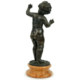 Putto, scultura in bronzo, cm h 26, base in marmo, firmata