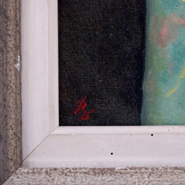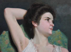 Ritratto di giovane ragazza, olio su tela, cm 69x58, monogramma e iscrizioni a tergo, entro cornice.