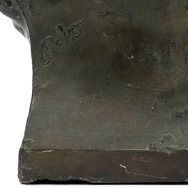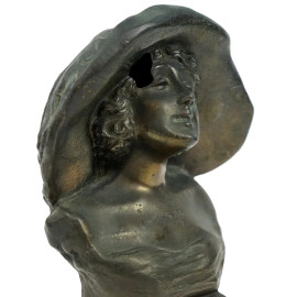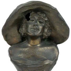 Ritratto di Lyda Borelli, scultura in metallo, cm h 18,5, firmato Peko, (difetti).