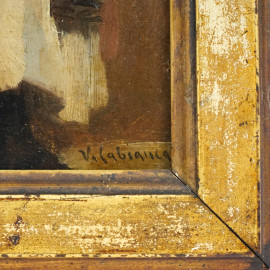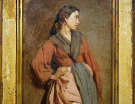 Ritratto di popolana, olio su cartoncino, cm 30,5x15,5, firmato, entro cornice