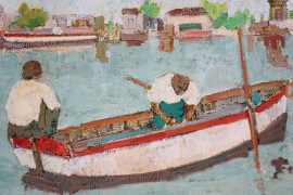 Pescatori, olio su tela, cm 49,5x70, entro cornice