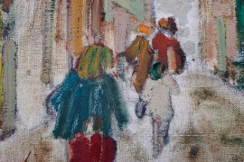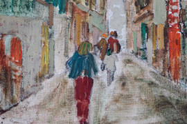Tra i vicoli, olio su tela, cm 70x51, entro cornice