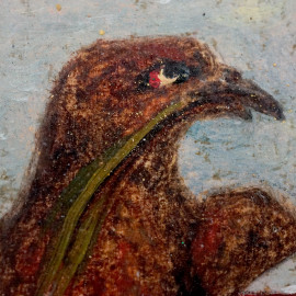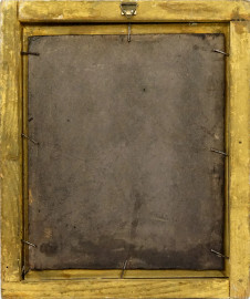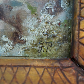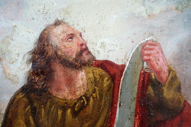 S. Giovanni Evangelista, olio su carta, cm 20x16, siglato FP, entro cornice, (difetti)