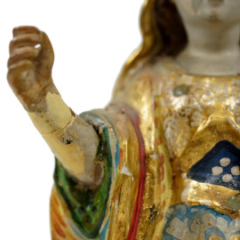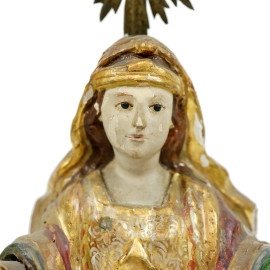 Santa Barbara, scultura in legno intagliato, dorato e dipinto in policromia, cm h 28, Brasile, XVIII - XIX secolo, (difetti, mancanze e restauri)