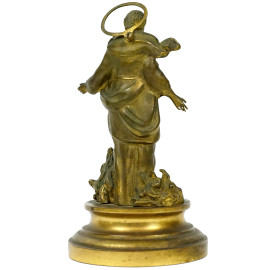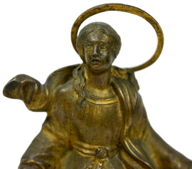 Santa, scultura in metallo dorato, cm h 17,5, XX secolo, (segni del tempo).