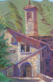 Santuario della Madonna del Perello, pastello su cartone, cm 45,5x35,5, entro cornice.