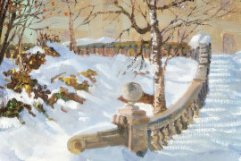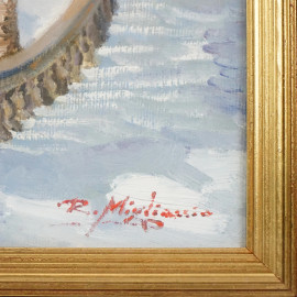 Scalinata innevata, olio su tela, cm 20x25, firmato, entro cornice