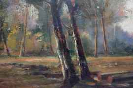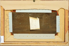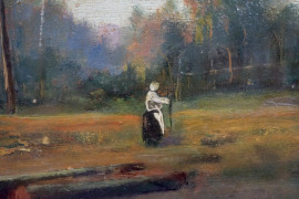Scorcio campestre con contadina, olio su tavola, cm 18x37, XX secolo, entro cornice