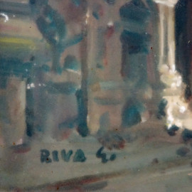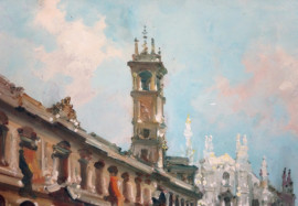 Scorcio sul Duomo di Milano, olio su faesite, cm 30x40, firmato G.Riva, entro cornice.