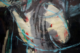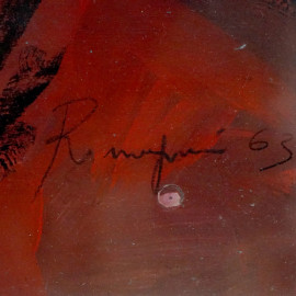 Senza titolo, olio su carta, cm 83x112,5, firmato e datato Romagnoni '63, entro cornice.