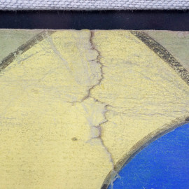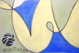 Senza titolo, tempera su cartone, cm 16x39, firmato, entro cornice, (macchie).