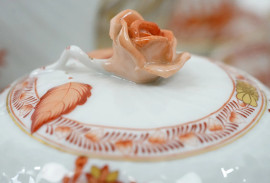 Servizio da thè in porcellana, Herend, XX secolo, decoro "Apponyi Orange" con lumeggiature dorate, (pz.27)