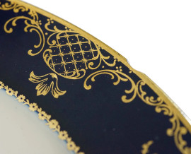 Servizio in porcellana bianco e blu con lumeggiature dorate, Rosenthal, metà XX secolo (pz. 93), misure max cm 18x20, (difetti, un piatto restaurato).