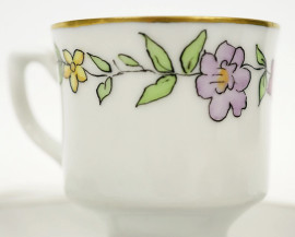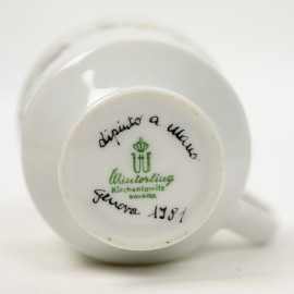 Servizio tete à tete in porcellana Winterlig Bavaria, seconda metà XX secolo, decori floreali dipinti a mano, composto da: vassoio, due tazzine e due piattini, misura max cm 33x15.