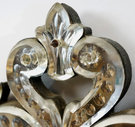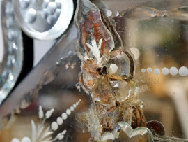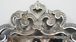 Specchiera ottagonale in vetro di Murano, XX secolo, particolari e decori floreali a mola, misure ingombro cm 112x68, (difetti e mancanze)