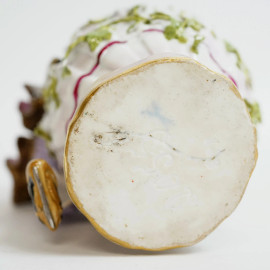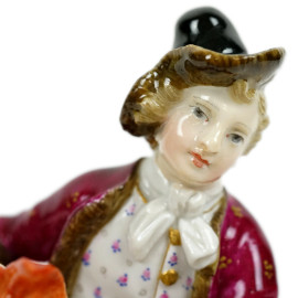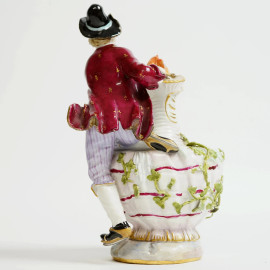 Statuina in porcellana policroma raffigurante fanciullo al focolare, Meissen, XIX secolo, cm h 16, (lievi difetti)
