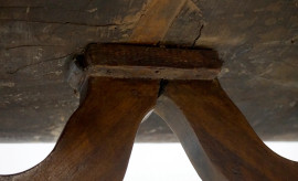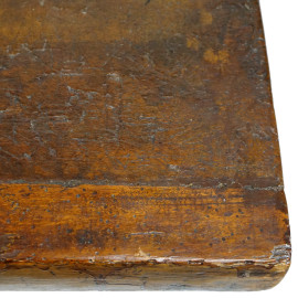 Tavolo fratino in noce, XVIII secolo, lungo piano rettangolare sostenuto da montanti a lira riuniti da doppia traversa sagomata, cm h 86x207x62, (difetti).