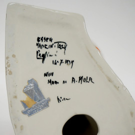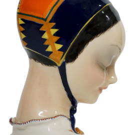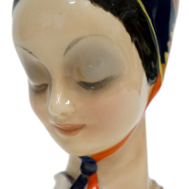 Testa di fanciulla sarda, scultura in ceramica smaltata policroma, manifattura Essevi, Cagliari, datata 1934, modello di Alessandro Mola, cm 22x18x9