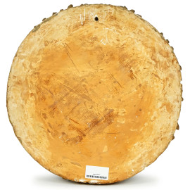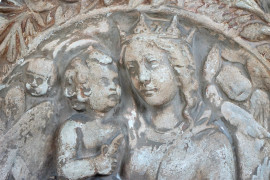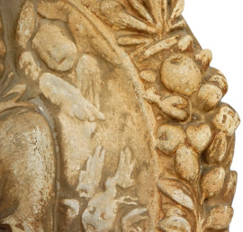 Tondo in gesso raffigurante Madonna incoronata con Bambino e putti entro ghirlanda, cm 45x45, XX secolo, (difetti).