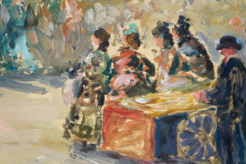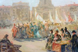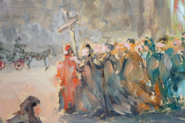 Pellegrinaggio spagnolo, olio su compensato, cm 45x55, entro cornice