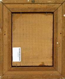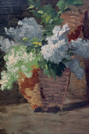 Vaso con ortensie, olio su tavoletta, cm 21x16, XX secolo, entro cornice