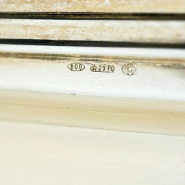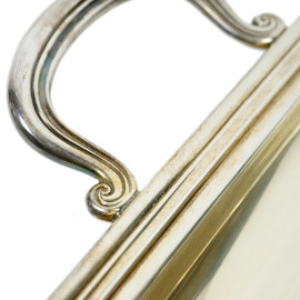 Vassoio di linea rettangolare in argento con doppia presa laterale, cm 53x30, argentiere Greggio, Padova, seconda metà XX secolo, peso gr.1210