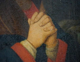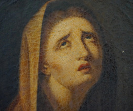 Vergine orante, olio su tela ad assetto ovale, cm 48,5x36,5, XIX secolo, entro cornice.