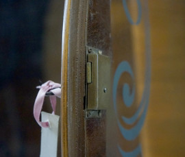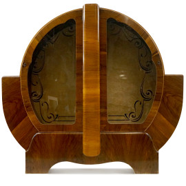 Vetrina art déco, XX secolo, impiallacciata in noce, a due sportelli vetri, cm 124,5x138x31,5, (difetti)
