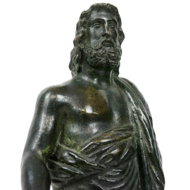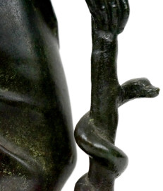 Esculapio, scultura in bronzo brunito, cm h 39.5, base in marmo.