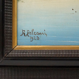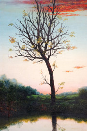 Albero al tramonto, olio su tela, cm 70x50, firmato e datato, entro cornice.