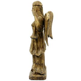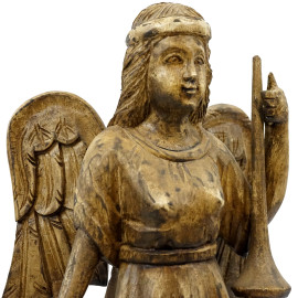Angelo con tromba, scultura in legno, XX secolo, cm h 60, (difetti)