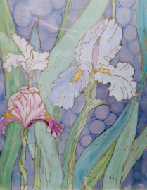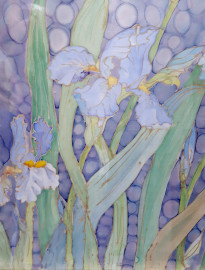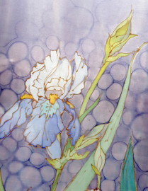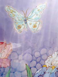 Artista del Novecento, Farfalla e orchidee, raffinato dipinto su seta pura, cm 95x85, firmato, entro cornice.