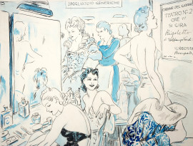Bellezze nello spogliatoio del teatro, tecnica mista su carta, cm 33x28,5
