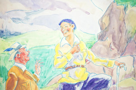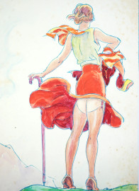 Gambe in mostra-escursione glamour, tecnica mista su cartoncino, cm 30,5x24