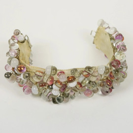 Bracciale con perline in vetro nei toni del rosa, con chiusura in argento, lunghezza cm 17,5