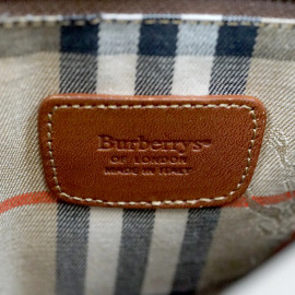 Burberry's, valigia da viaggio in pelle nera e marrone, cm 35x57x26,5