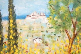 Paesaggio, olio su tela, cm 20x14.5, entro cornice.