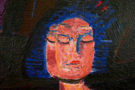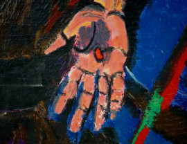 Maternità, multiplo polimaterico su tela, cm 158x79,5, es. 63/150, entro cornice