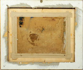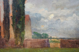 Cipressi, olio su cartone telato, cm 30x40, firmato, entro cornice, (cadute di colore).