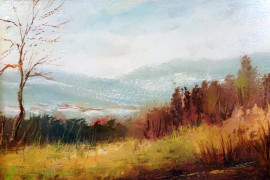 Compagna senese, olio su tavola, cm 13,5x18,5, firmato R. Senatori, entro cornice.