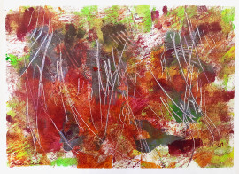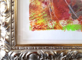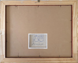 Composizione astratta, acrilici su tela, cm 28x37, firmato in basso a sinistra, timbro e firma dell’artista a tergo, entro cornice