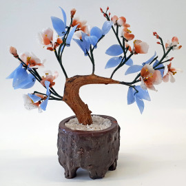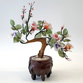 Coppia di bonsai vintage realizzato con mix di pietre dure in diverse tonalità di colore, altezza cm 35 circa , Cina popolare XX sec.,
